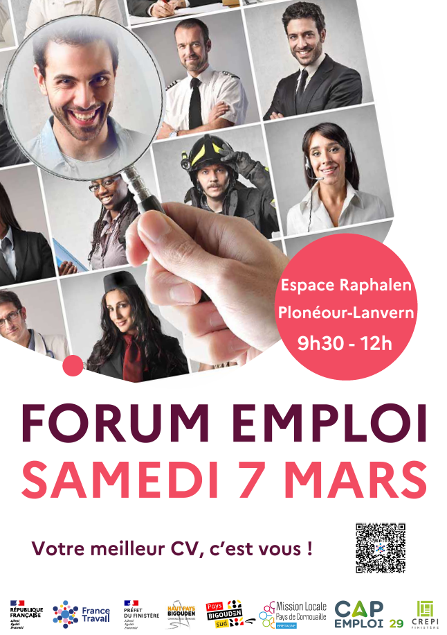 Organisé par l’agence France Travail de Pont-l’Abbé, le forum se tiendra cette année le samedi 7 mars, de 9h30 à 12h, aux Halles Raphalen à Plonéour-Lanvern.