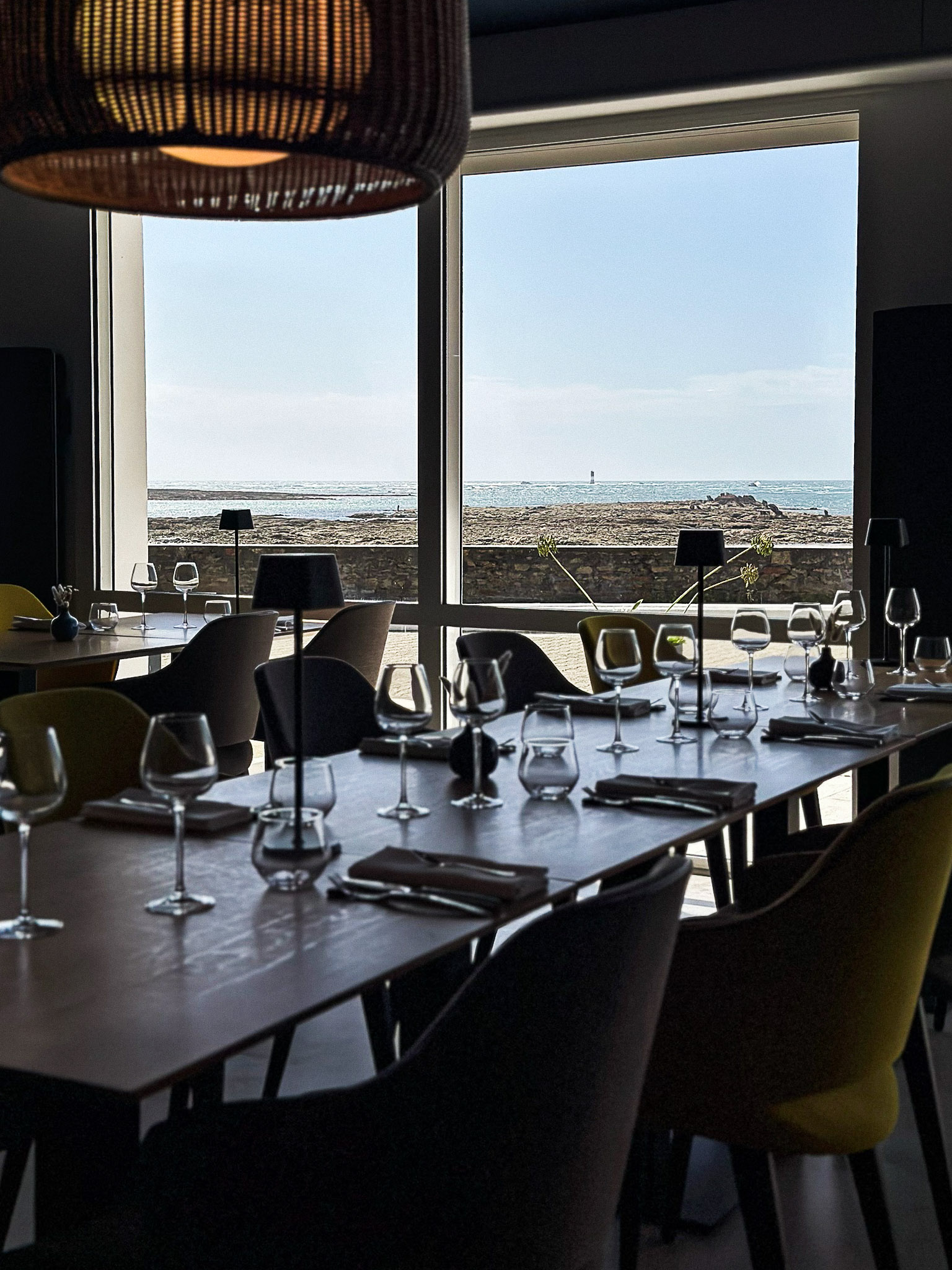 Les 17 chambres, dont 13 avec vue mer, ont été entièrement rénovées, ainsi qu’une suite adaptée aux personnes à mobilité réduite. Côté restaurant, nous voulions une atmosphère cosy et chaleureuse, avec un esprit bord de mer et de beaux matériaux. L’espace compte désormais 45 couverts et une salle dédiée aux petits-déjeuners.